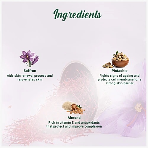 - Blended with pure saffron, almond and pistachio oils, as well as turmeric and wild turmeric extracts