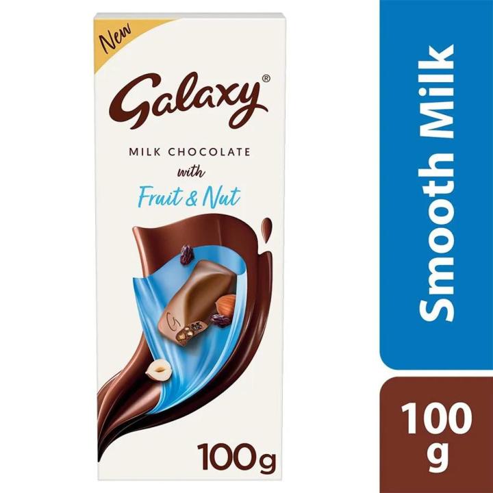 - FRUIT & NUT MILK CHOCOLATE: Sweeten up your life by indulging in the rich smoothness of Galaxy Milk Chocolate with Fruit & Nut