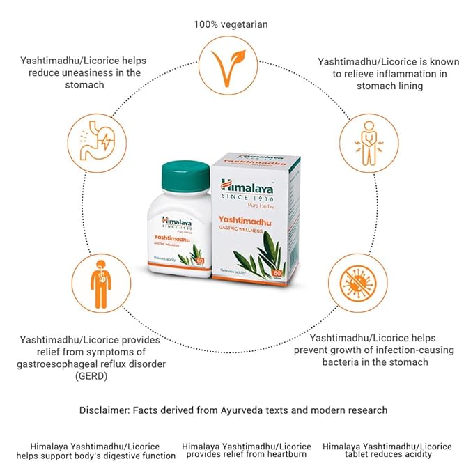 Himalaya Wellness Pure Herbs Yashtimadhu GASTRIC WELLNESS 60 Tablets INDIAN