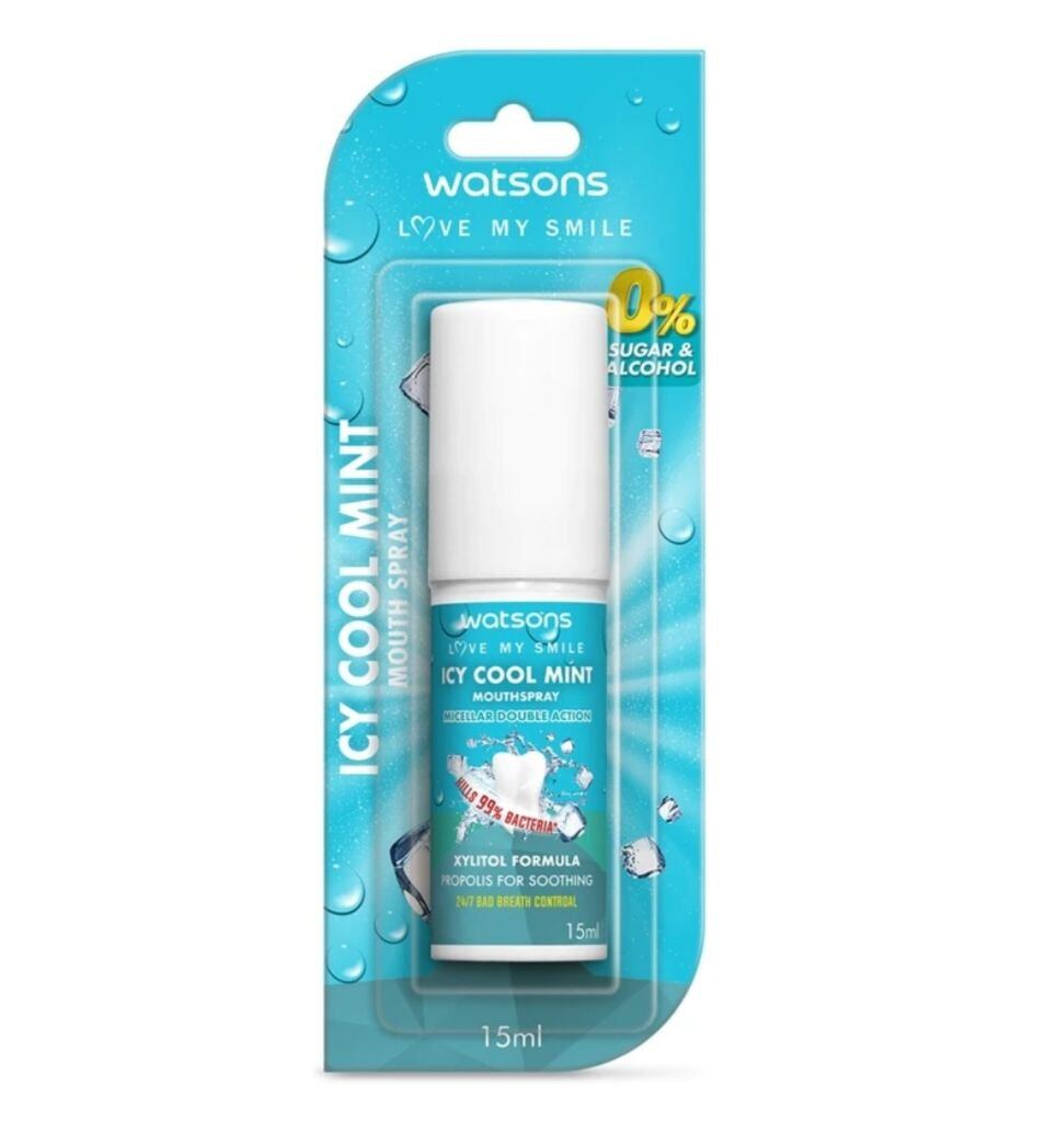This mouth spray is specially formulated to overcome bad breath from smoking, drinking, and eating spicy foods. It contains Xylitol which helps prevent tooth decay from bacteria acids. The icy cool flavour helps cool and refreshen your mouth. Sugar Free.