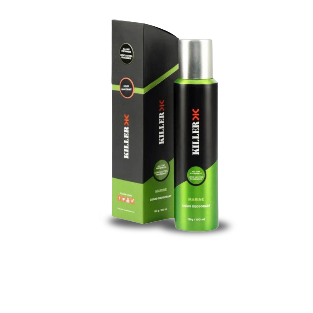 Killer presents Marine, an extraordinary deodorant for men. Infused with an active and radiating fragrance, it keeps you on an all time high, all day. It keeps you refreshed and dry by keeping you free from body odour. Let Marine give you a marvellous start every morning. It is specially formulated deodorant for men. Long lasting fragrance. Keeps you refreshed all day long. Additional Information: Starting as a jeans brand, the Killer product portfolio today, includes stylish women's and men's ready-to-wear apparel, footwear (shoes, socks), eye-wear and other addictive accessories like deodorants, belts etc. Owned by Kewal Kiran Clothing Limited (KKCL), Killer deodorants for men and women have an invigorating, long-lasting scent that keeps you fresh all day long.